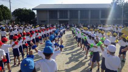 子どもたちは朝からリズムダンスやリレーを楽しみにしていました。