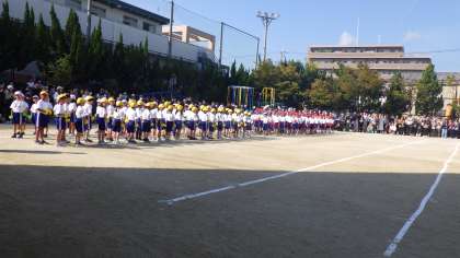 開会式や準備体操では各クラス1列になりしっかりと話を聞いていました。