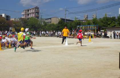 リレーでは、バトンパスに気を付けて挑戦しました。