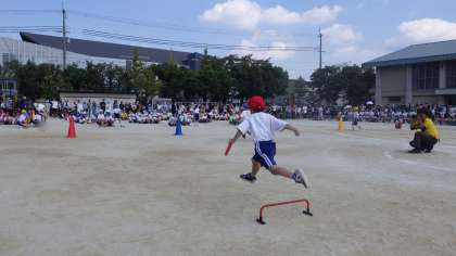 バトンパスの仕方やコーンの回り方、ミニハードルでの走り方などそれぞれ考え走りました。