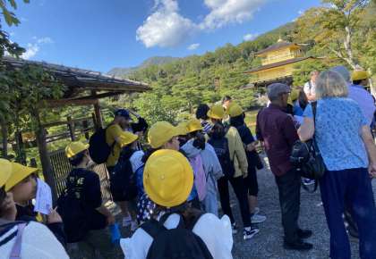 鹿苑寺金閣では,お天気が味方をしてくれて,黄金に輝く金閣を見ることができました。「思っていたより大きかった!」「中が見てみたいな…」と実物を前にして嬉しそうな6年生でした。