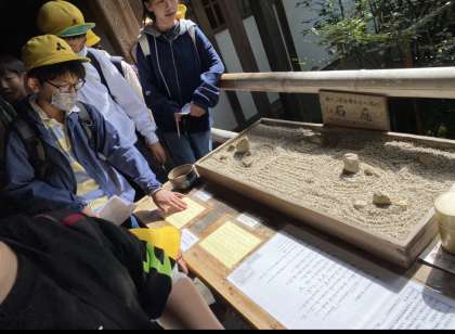 秋晴れのもと,社会見学に行ってきました。龍安寺では,石庭の15石を数えながら庭を鑑賞しました。全部が見える場所を見つけられた人もいました。