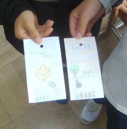 今月1日から始まった「もみじ読書月間」の取組の一つに、図書委員会のクイズラリーがあります。本の分類番号やヒントを手掛かりに、クイズに挑戦します。縦列、横列、斜め列の正解が揃うと、図書委員会が作成したしおりのプレゼントがあります。