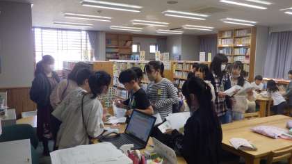 たくさんの人が図書館に来て、図書館が活気づきました。