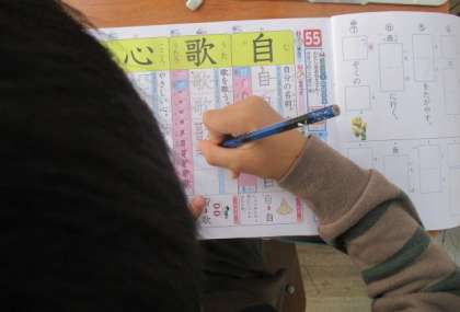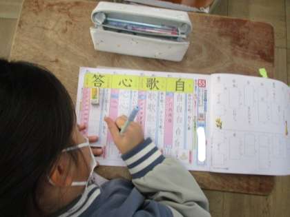 読み方や画数、書き順を確認しながら、丁寧に進めています。2年生で学習する漢字「160文字」の習得に向けて、頑張っています。