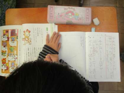 文章を作るときには、以前学習した「主語」と「述語」の関係を意識して、意味が伝わる文章づくりを心掛けています。いろいろな情景を思い浮かべながら、たくさんの文章をつくることができました。