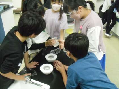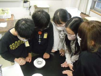 氷水でろ液を冷やしている間、少しでも変化を確かめるためにビーカーを食い入るように見つめる子どもたちの姿が印象的でした。