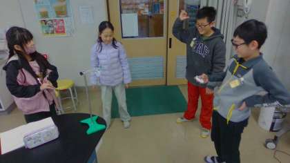 3回の実験を通して、ふりこの1往復する時間はふりこの長さによって変わり、ふりこの長さが長いほど1往復する時間が長くなることが分かった子どもたち。