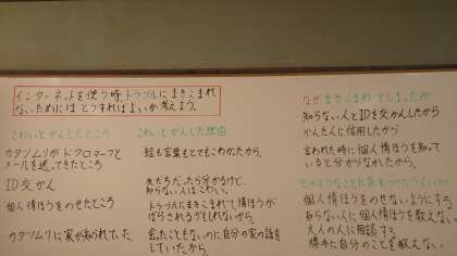 なかま週間に「軽い気持ちのID交換から」を映像資料を見て、こわいと