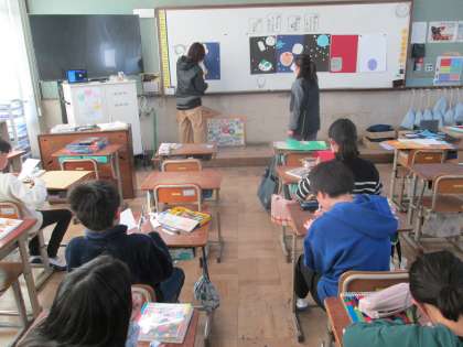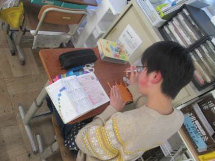 ことばのひろばコーナーがどうやって作られているのか、裏側に潜入です。木曜日の6時間目の委員会活動を見学してきました。イラストを描く人、言葉を辞書で探す人、みんなでのりづけ。一人一人活動して掲示板が完成していました。