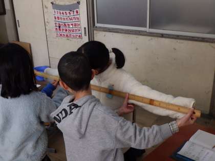 30cmのものさしでは測りにくいので、100cmものさしを使いました。