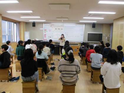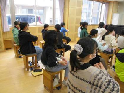 音楽の学習では、「Believe」を手話付きで歌えるように練習しています。