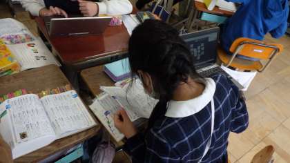 相手に伝わる文章を書くために,言葉を選ぶことが大事だと分かり,語彙を増やすために国語辞典を使って調べています。