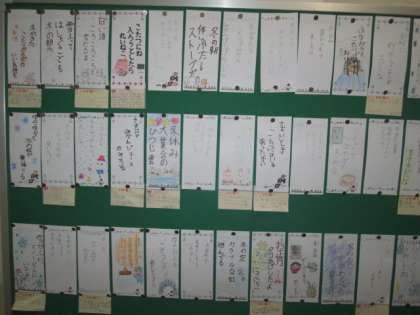 職員室前の、冬の俳句。どんどんレベルが上がっています。しっかり季語を入れていたり、オノマトペを使ったり、読むと情景が分かるような伝え方ができるようになってきています。文化委員の皆さん、俳句を応募してくれた皆さん、どうもありがとう。楽しく読ませてもらいました。