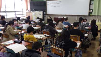 みんなでやり方を確認し、練習問題に取り組んでいます。