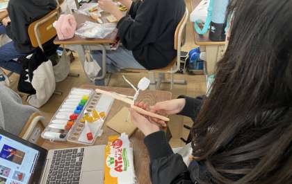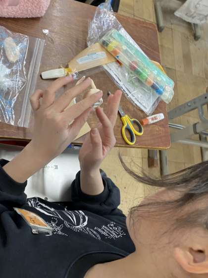 図画工作科では,立体作品に取り組んでいます。未来の自分をイメージして,芯材に色づけした粘土をつけていきます。その都度,服装やもっている道具などをGIGA端末で調べながら,細部まで丁寧に作り上げています。だんだん仕上がってきています。作品は久世西ミュージアムに展示します。楽しみにご鑑賞ください。