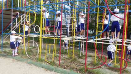 運動場には、総合遊具やジャングルジム、登り棒など様々な遊具があります。