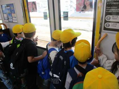 2年生は京都府立植物園に行ってきました。みんなワクワクドキドキ楽しみにしていた遠足ですが、まずはマナーに気を付けて電車に乗ります。みんな列が途切れないように、周囲に迷惑をかけないように一生懸命真面目に公共交通機関を使っていました。