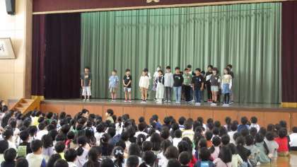 4年生の代表委員は、各クラス2名ずつ選出されています。全校児童の前で立派に発表をしてくれました。