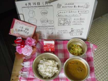 1年生にとっては初めての小学校でのカレーなので「辛さはどうかな」と心配でしたが,「おいしかった!」「からくなかった!」という感想を聞いてホッしました。