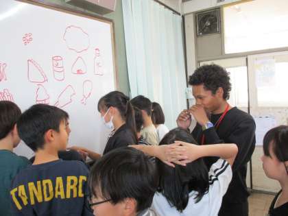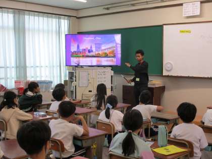 先生は今年初めて久世西小学校に来られました。そこで、ALTの先生のすきな食べ物や生まれた場所などについての自己紹介を聞きました。