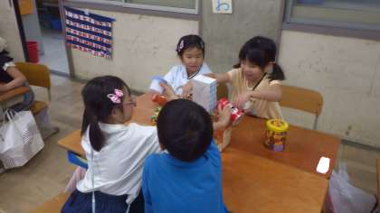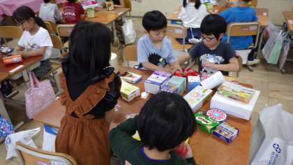 今週の算数の学習では、お家から持ってきた箱や缶を使って勉強しました。