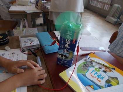 グループで協力しながら,かん電池の向きを変えてみると・・・