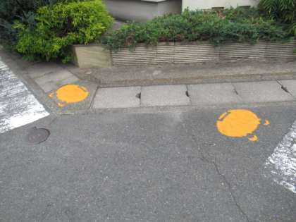 オレンジのカエルのいるところでは、いったん止まって安全を確認してから歩きましょうね。