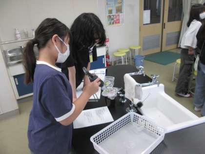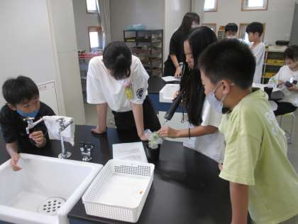 植物の葉に袋をかぶせ、ストローで息を吹き込んだ後に日光に当て、酸素と二酸化炭素の体積の割合がどのように変化したのかを調べました。