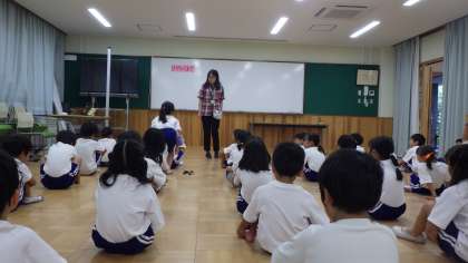 身長と体重を測る前に、「けがのてあて」について話を聞きました。