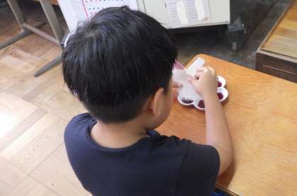 一生懸命育てた朝顔の花を使って、色水遊びをしました。