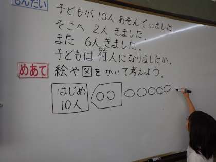 文章題は、問題を絵や図に表すことから始めています。