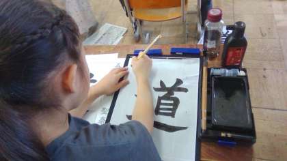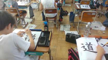 2学期の最初の毛筆の学習でした。一文字ですが、心をこめて書きました。書く位置や、中と外のバランスをとるのが難しい様子でした。