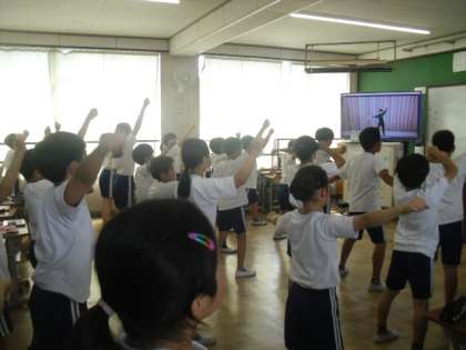 5年生体育、「表現運動」では、スポーツDAYに向けて「エイサー」を踊っています。難しい動きを何度も練習したり、分からないことは友だちと教えあったりと、一生懸命に活動することができています。
