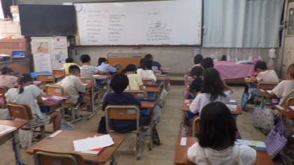 朝顔の色水遊びや体育のマット遊び、図工の敬老ポスターなど、子どもたちはどの授業も頑張っています。