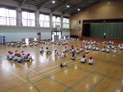 はじめは、イセエビ、ウナギ、魚、クラゲの役割に分かれて、それぞれ異なる振り付けに取り組んでいます。
