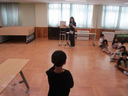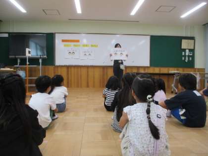 検査前に養護教諭から目を大切にするためのお話がありました。目を大切にするために、姿勢良く、長時間使わないことが大事であると知りました。また、目のストレッチを教わり、みんなで一緒に行いました。