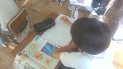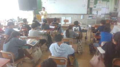 図画工作の学習「言葉から思いを広げて」では、物語から心に残った場面を想像して絵を描いていきます。今回は、教師が読み聞かせを行い、そこから心に残ったところをたくさんメモしていきました。これからどのような絵が完成するのかとても楽しみです。