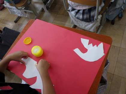 切った紙を、色画用紙の上に置いてみよう。
