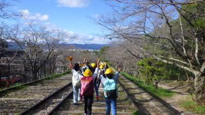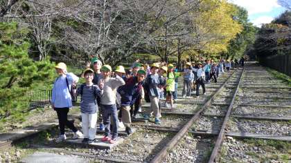 田辺朔郎像の前を通り,インクラインを下って,疏水記念館に向かいます。