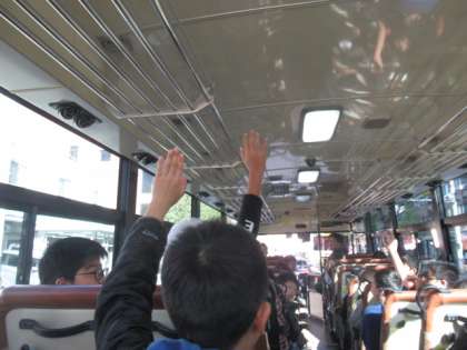 山の家までのバスの中では、楽しいバスレクを行いました。