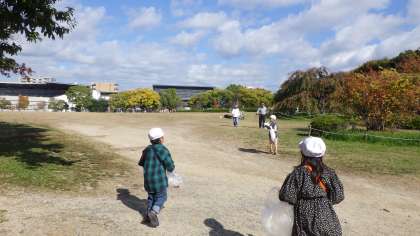 梅小路公園では2クラスずつに分かれて秋見つけをしました。