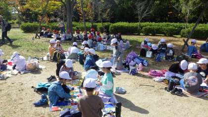 秋見つけの続きをしたり、鬼ごっこやだるまさんがころんだをしたりして、楽しんでいました。