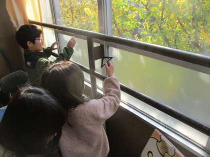 三角定規を使って身の回りの直角を探しました。