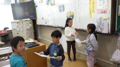 目玉が動くたぬきがかわいい。」など、たくさんのことを発表し友だちに伝えることができました。