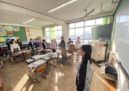 転入生が、日直デビューをしました。勝手が違ってわからないことだらけの中、頑張れ!と、じっと耳を傾けて日直の様子を見守る子どもたち。