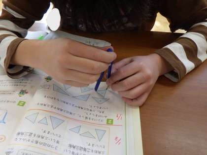 さくらでは、2・3時間目は個別学習(国語や算数)に取り組んでいます。一人一人のペースに合わせた学習をしています。分かるところは自分でどんどん進め、分からないところは先生と一緒に考えます。