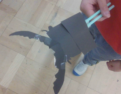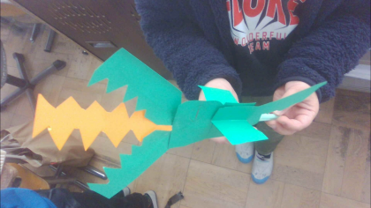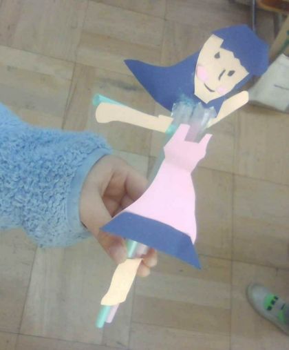 2年生図画工作科では、太いストローと細いストローを組み合わせて「パタパタ」動く仕組みを作り、パタパタ動く楽しいおもちゃを作りました。