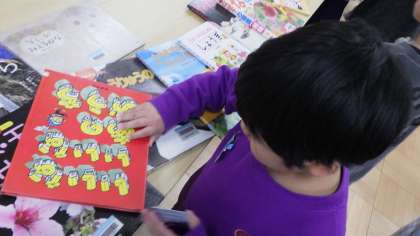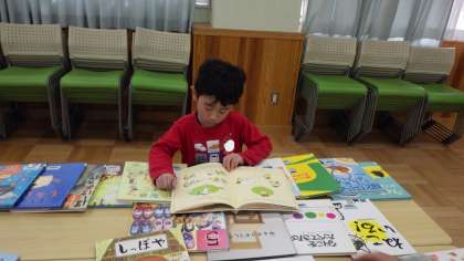 いろいろな本がたくさん並んでいて、子どもたちはどの本を借りようか迷っていました。