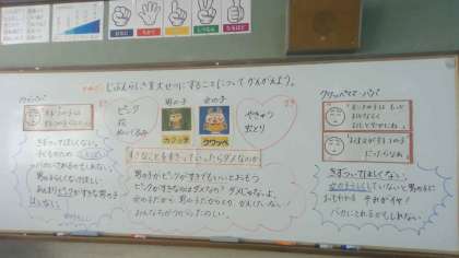 子どもたちは考えを出し合い、「男の子は男の子らしく」、「女の子は女の子らしく」ではなく、「好きなものは好きと言っていい」「大丈夫だよ」などと、カブッチやクワッペに伝える手紙を書いていました。